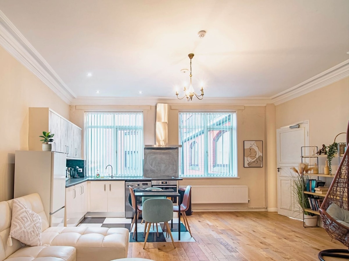 Tucked inside one of Sheffield's most iconic buildings, this isn't your average city centre flat. The space has personality. Think curated art, bold design choices, and a vibe that feels more creative studio than generic serviced apartment. It's the kind of place you'll want to photograph before you even unpack. WHAT YOU GET ✔ Free on-site parking ✔ Fast WiFi — actually fast ✔ Fully equipped kitchenette ✔ Washing machine ✔ Self check-in
